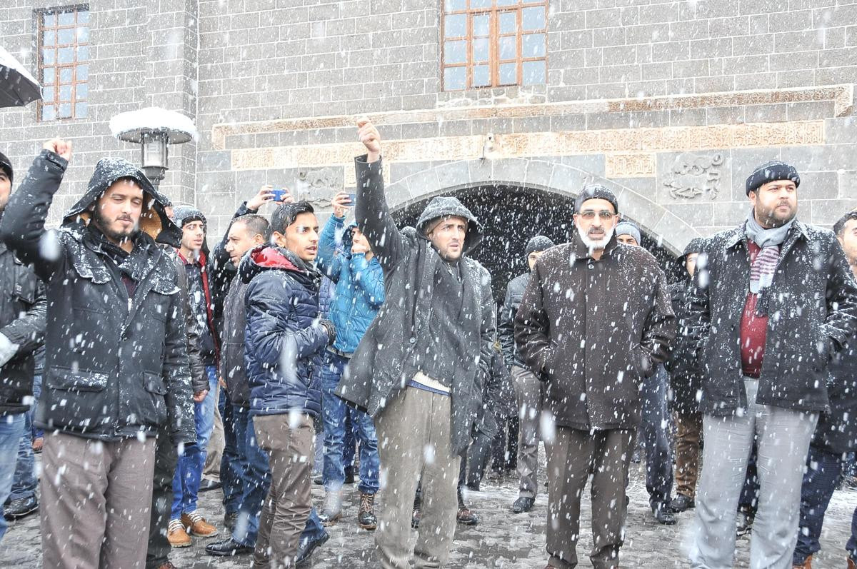 Yoğun kar yağışına rağmen kentin farklı mahallelerinden gelen vatandaşlar, terör olaylarının sona ermesi için dua etti.
