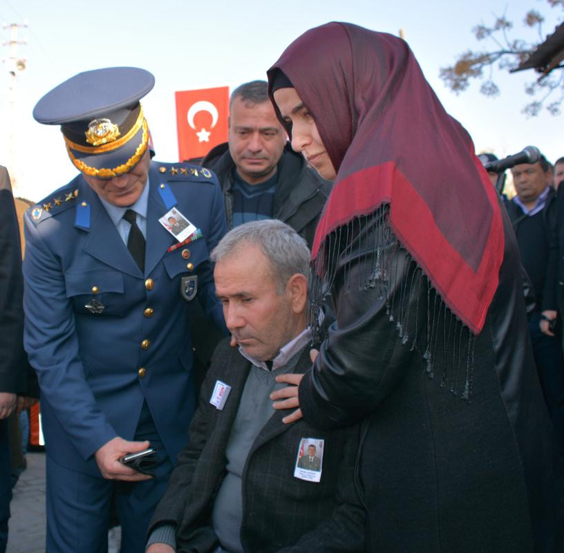 Baba Tahsin Denizer, anne Ayşe Dudu, abla Sema, kız kardeş Emine Denizer, helallik için Efendi Mahallesi'ne getirilen şehit Jandarma Uzman Çavuş Serdar Denizer'in tabutuna sarıldı.
