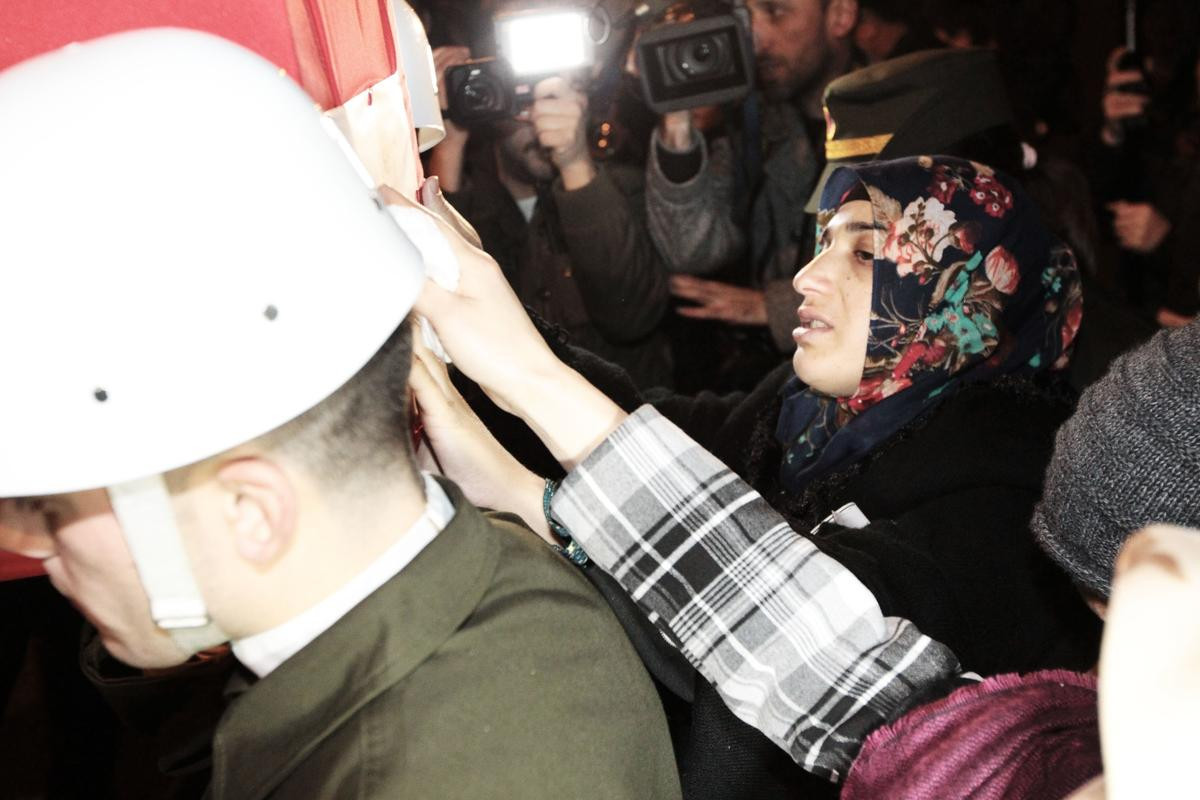 Şehidin naaşı askerlerin omuzlarında cenaze aracına götürülürken eşi Leyla Özdemir, ellerini tabuta koyarak, "Hoş geldin aşkım, vatan sağ olsun, senin yerine oğlun gelecek" ifadelerini kullandı.