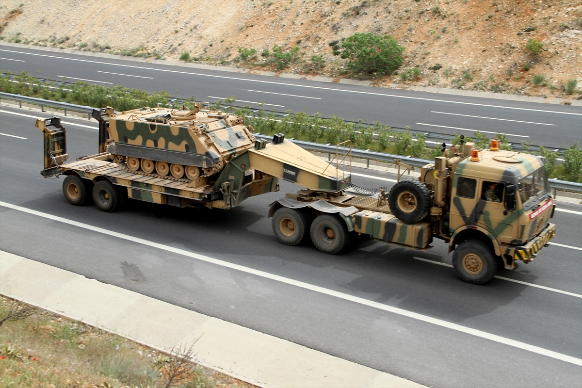 Alınan bilgiye göre, 5. Zırhlı Tugay Komutanlığında konuşlu zırhlı personel taşıyıcı araçlar tırlarla Kilis'e hareket etti. Zırhlı araç yüklü tırlara, polis ve jandarma ekipleri eskortluk etti.