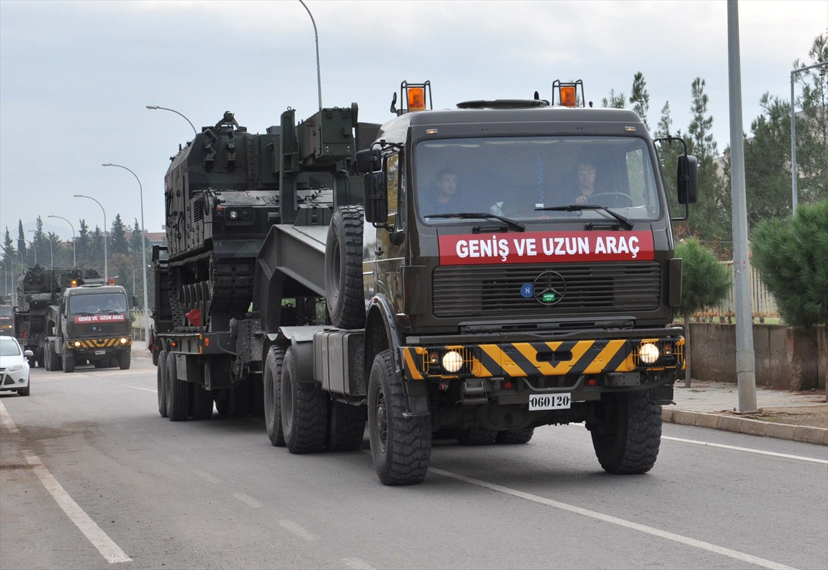 Alınan bilgiye göre, Adana 6'ncı Mekanize ve Piyade Tümen Komutanlığından çekicilerle gönderilen 4 fırtına obüsü, karayoluyla İslahiye'ye ulaştırıldı.