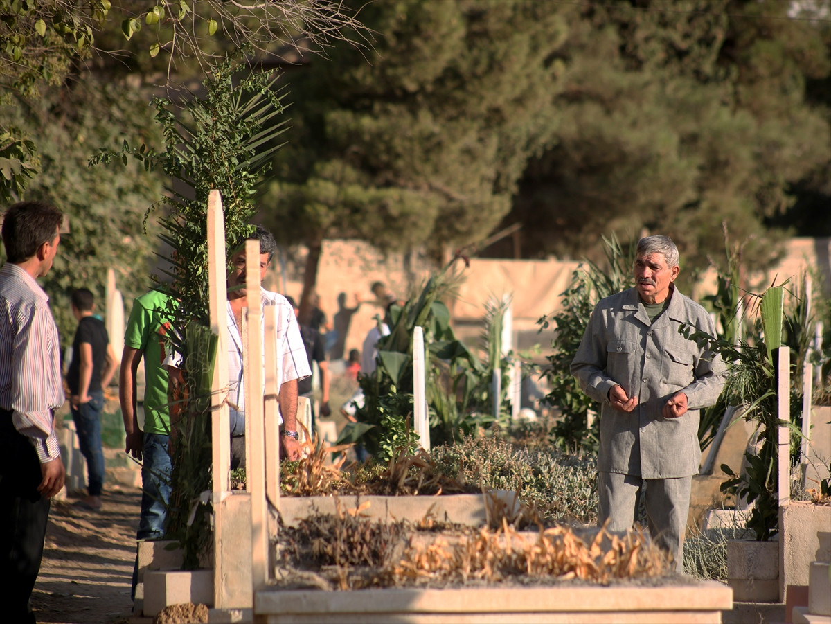 Namazın ardından bayramlaşan Suriyeliler kaybettikleri yakınlarının mezarlarını ziyaret etti.