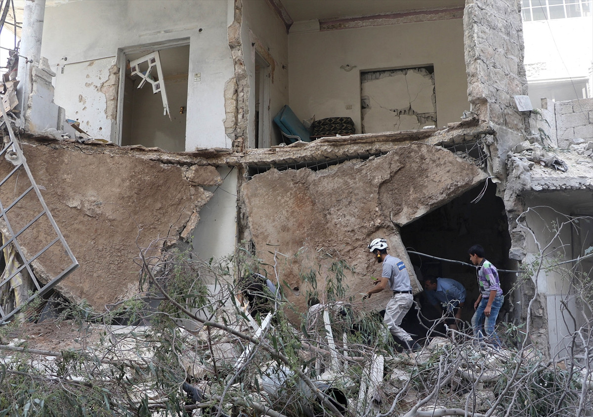 Halep'teki sivil savunma yetkililerinden İbrahim Ebu Leys de Sukkeri'ye yönelik varil bombalı saldırı sonucu semtteki 6 katlı bir binanın tamamen çöktüğünü belirtti.