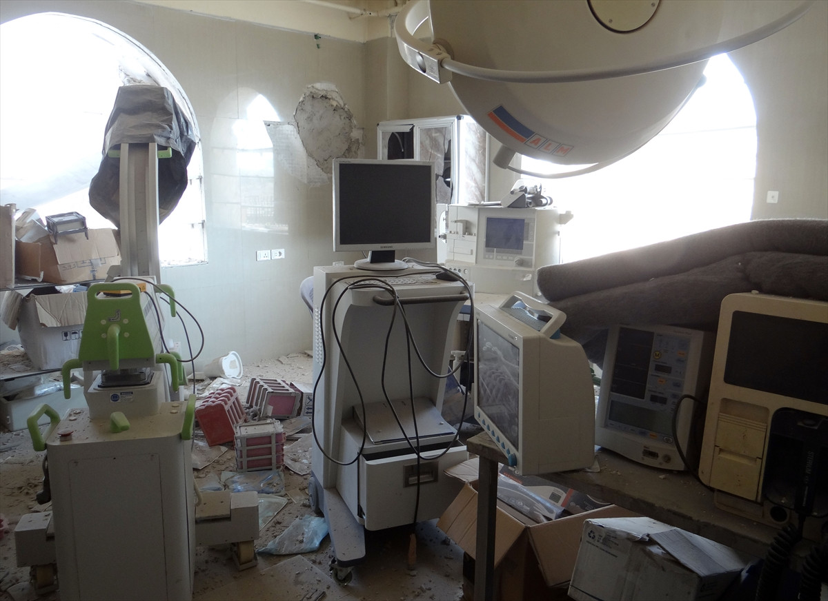 Halep'teki sivil savunma yetkilisi Babiris Meşal, AA muhabirine yaptığı açıklamada, Etarib ilçesindeki sahra hastanesinin üç hava saldırısına maruz kaldığını ve kullanılamaz hale geldiğini söyledi.