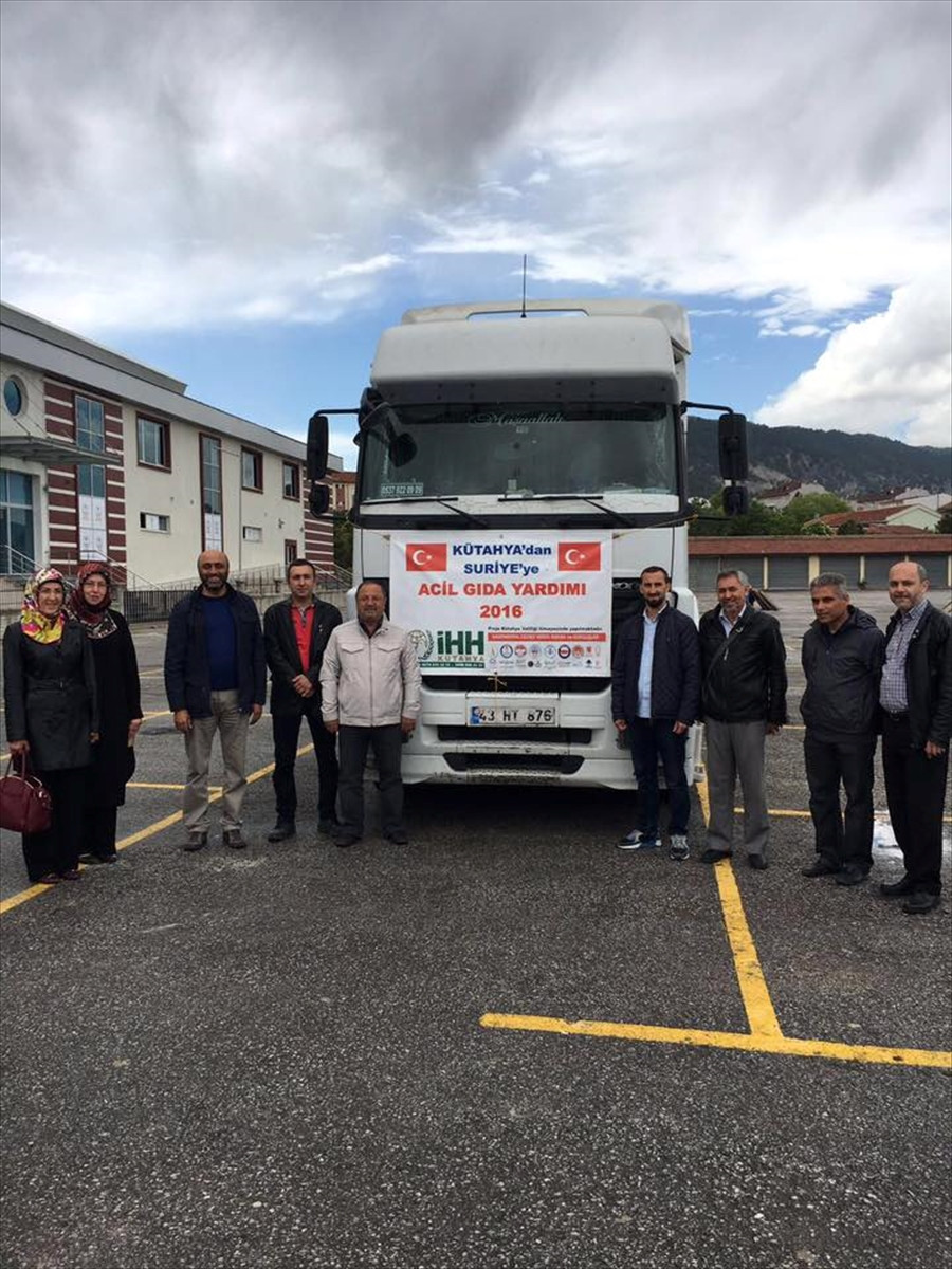 KÜTAHYA (AA) - İnsan Hak ve Hürriyetleri (İHH) Kütahya İnsani Yardım Derneği tarafından toplanan gıda maddesi, battaniye, giysi gibi ihtiyaç malzemeleri bir tıra yüklenerek, Suriye'deki iç savaş mağdurlarına gönderildi.