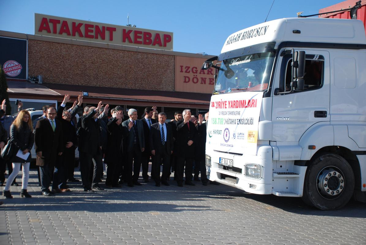 KÜTAHYA (AA) - Sancak Eğitim Kültür ve Yardımlaşma Derneği (SANCAK-DER) Kütahya temsilciliğince Suriye'deki Türkmenlere ulaştırılmak üzere hazırlanan, içerisinde gıda, giysi ve battaniye bulunan 8 yardım tırı bölgeye yola çıktı.
