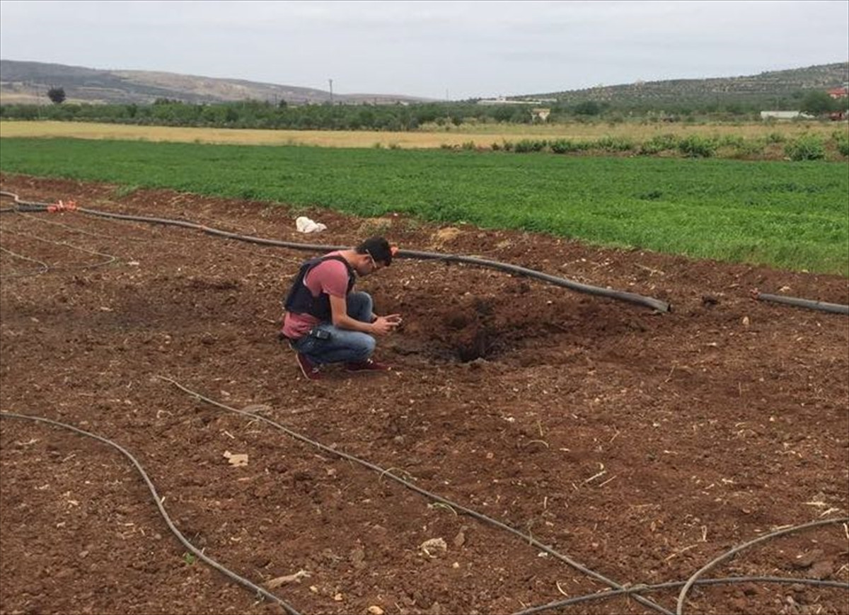 KİLİS (AA) - Suriye'den ateşlenen roket mermisi, Kilis'te sebze bahçesine düştü.