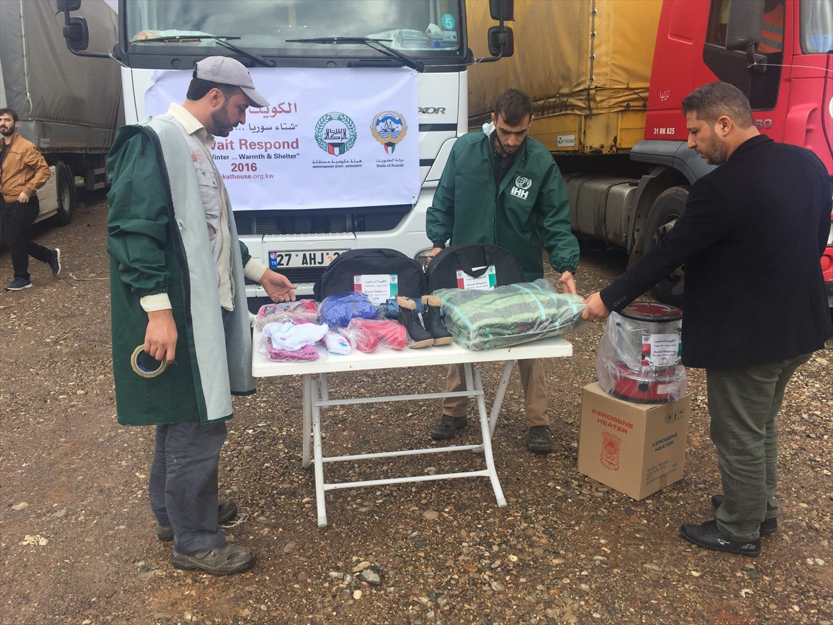 Konuşmanın ardından, içerisinde 12 bin 100 gıda paketi, bin battaniye, 770 paket kışlık erkek, kadın ve çocuk giyimi, 4 bin 400 adet sünger, 11 bin metrekare mat, 850 soba, 4 bin yağmurluk ve tıbbi donanımlı 1 adet yoğun bakım ünitesi yüklü 16 tır Suriye'ye uğurlandı.