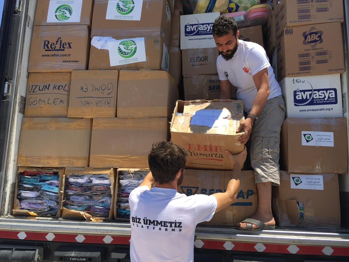 HATAY (AA) - Biz Ümmetiz Platformu ve Avrasya Vakfı tarafından Suriye'ye 180 bin adet kıyafet, 45 bin çift ayakkabı ve 2 bin adet oyuncak gönderildi.