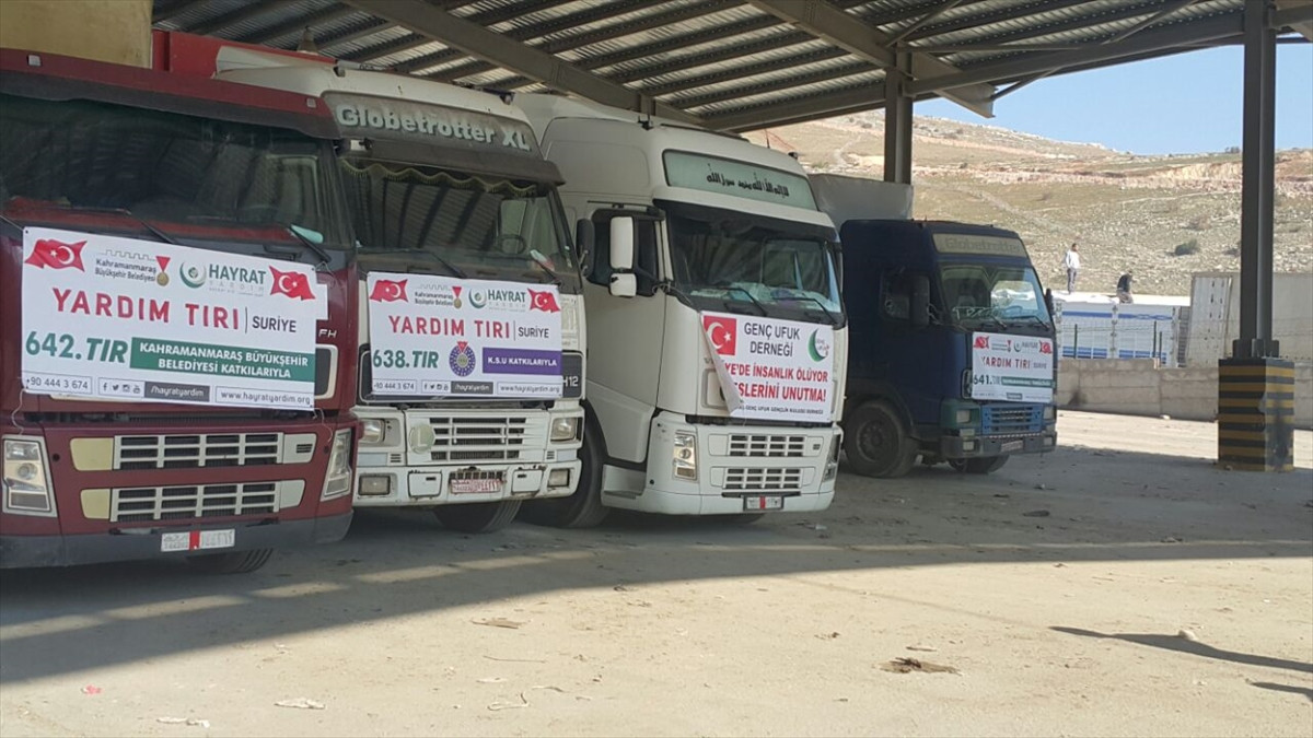 Yardım tırları Reyhanlı ilçesindeki Cilvegözü Sınır Kapısı'ndan Suriye'ye geçiş yaptı.