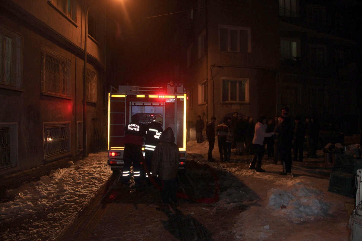 KONYA (AA) - Konya'da evlerinde yangın çıkan Suriyeli aile, komşularının yardımıyla evden çıktı.