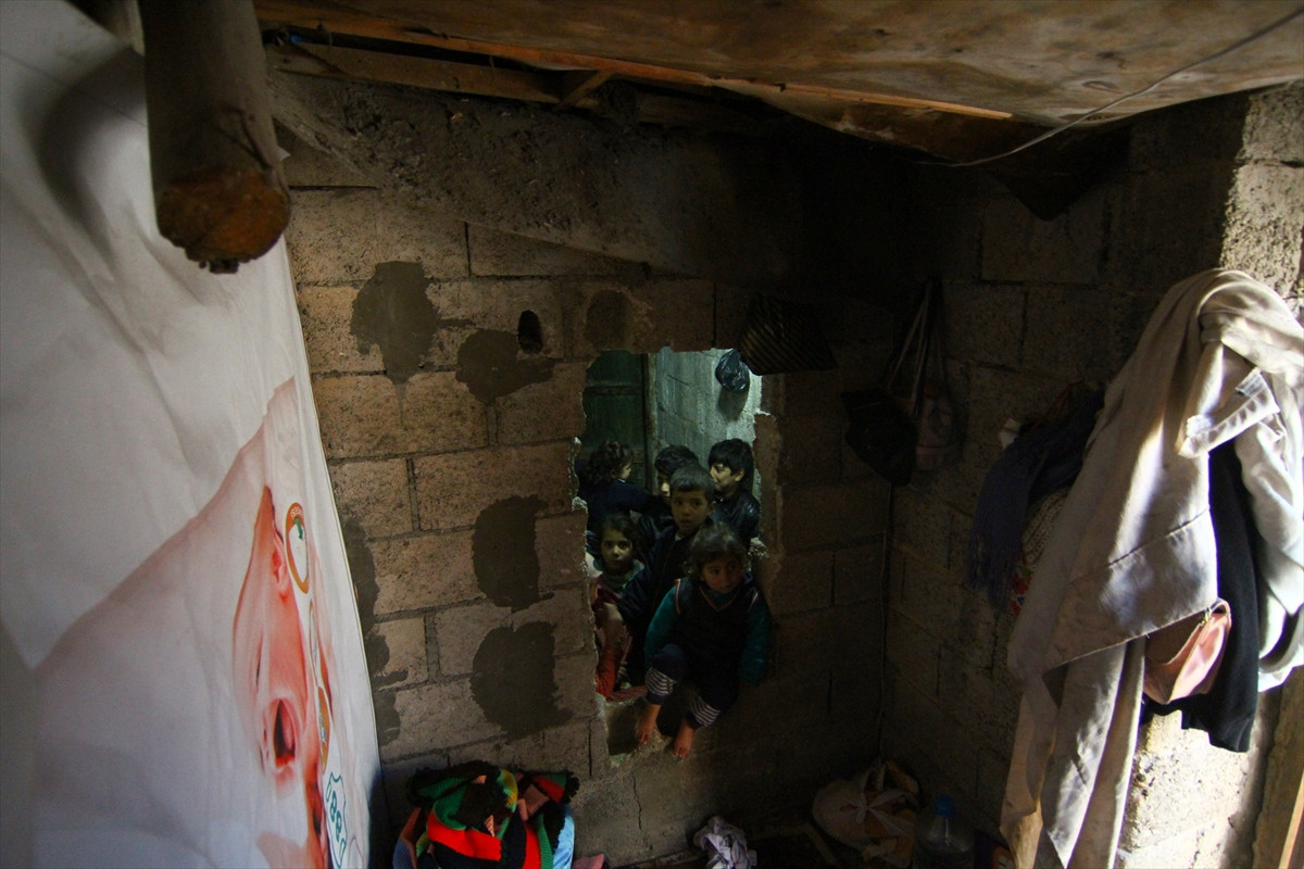 En büyüğü 11 yaşındaki 8 çocuklarıyla merkez Şahinbey ilçesi Tışlaki Mahallesi Nazar Sokak'ta bir odunluğa sığınan aile, ev sahibi ve komşularının yardımlarıyla hayata tutunmaya çalışıyor.