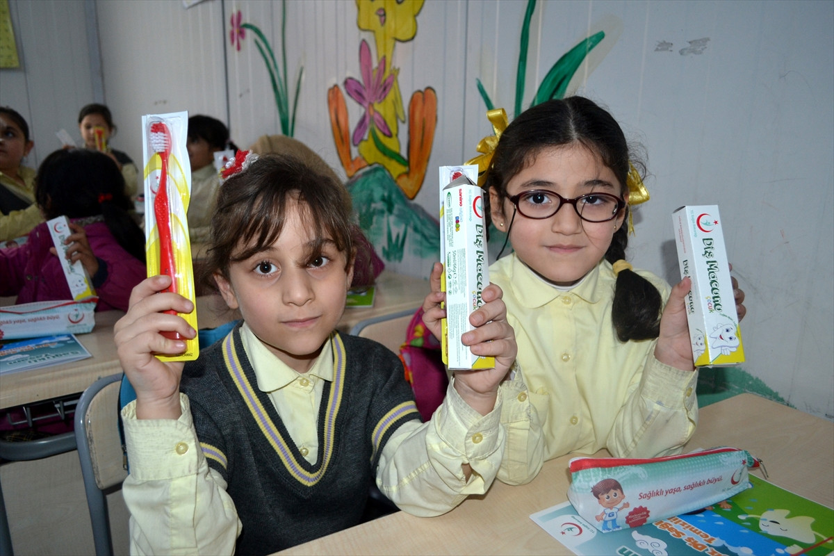 İl Halk Sağlığı Müdürlüğünce görevlendirilen diş hekimleri Duygu Aydın ve Hülya Emir, Antakya'daki Dünya Şehit Çocukları Okulu'nda eğitim gören Suriyeli yetim çocuklara ağız ve diş sağlığı eğitimi verdi ve tarama yaptı.