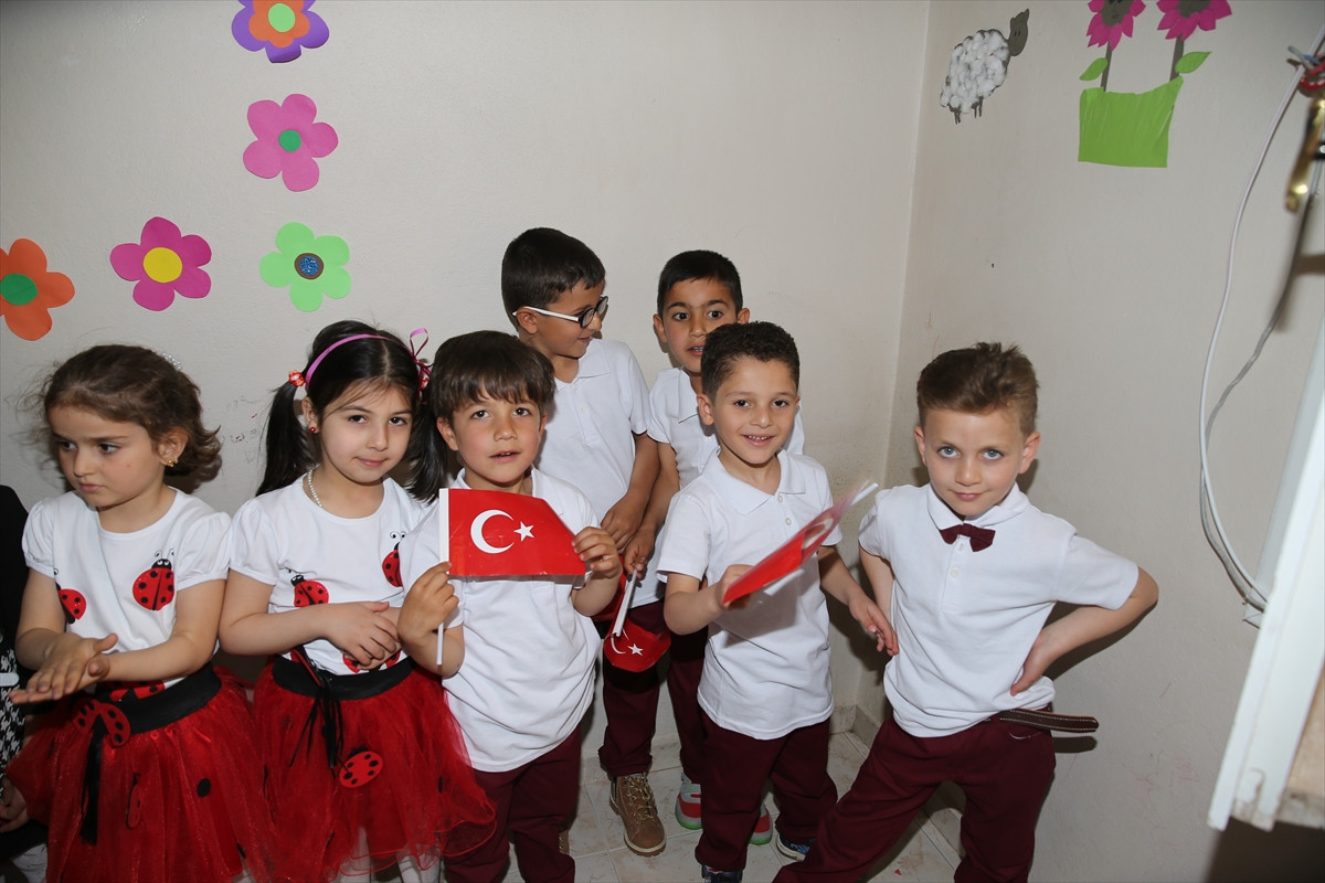Osmaniye'nin Kadirli ilçesinde ise anaokulu öğrencileri, 23 Nisan Ulusal Egemenlik ve Çocuk Bayramı sevincini Suriyeli çocuklarla paylaştı.