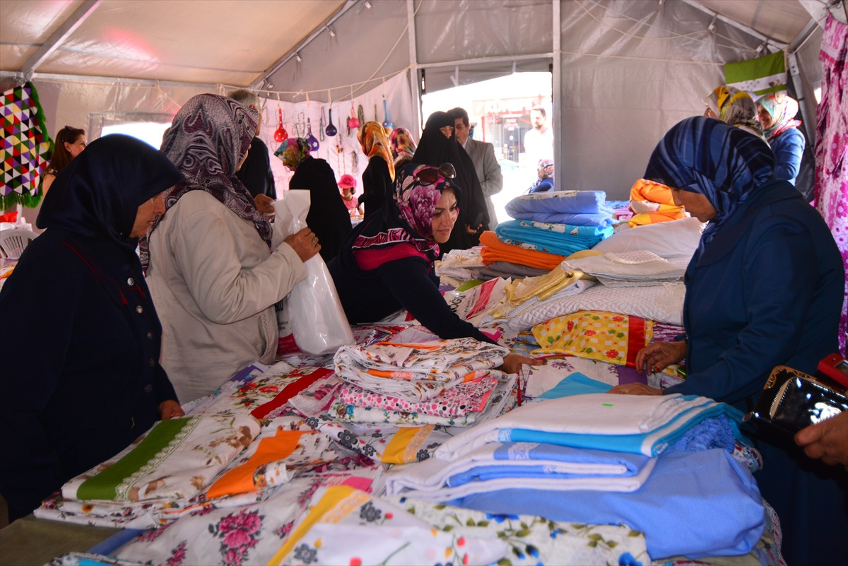 Cumhuriyet Meydanı'nda açılan "El emeği, göz nuru" isimli kermeste konaklama merkezinde yaşayan ve Halk Eğitim Merkezi tarafından açılan kurslara katılan 187 Suriyeli kadının yaptığı dikiş, nakış, örgü, takı, süs eşyası, kilim ve boncuk gibi ürünler satışa sunuldu.