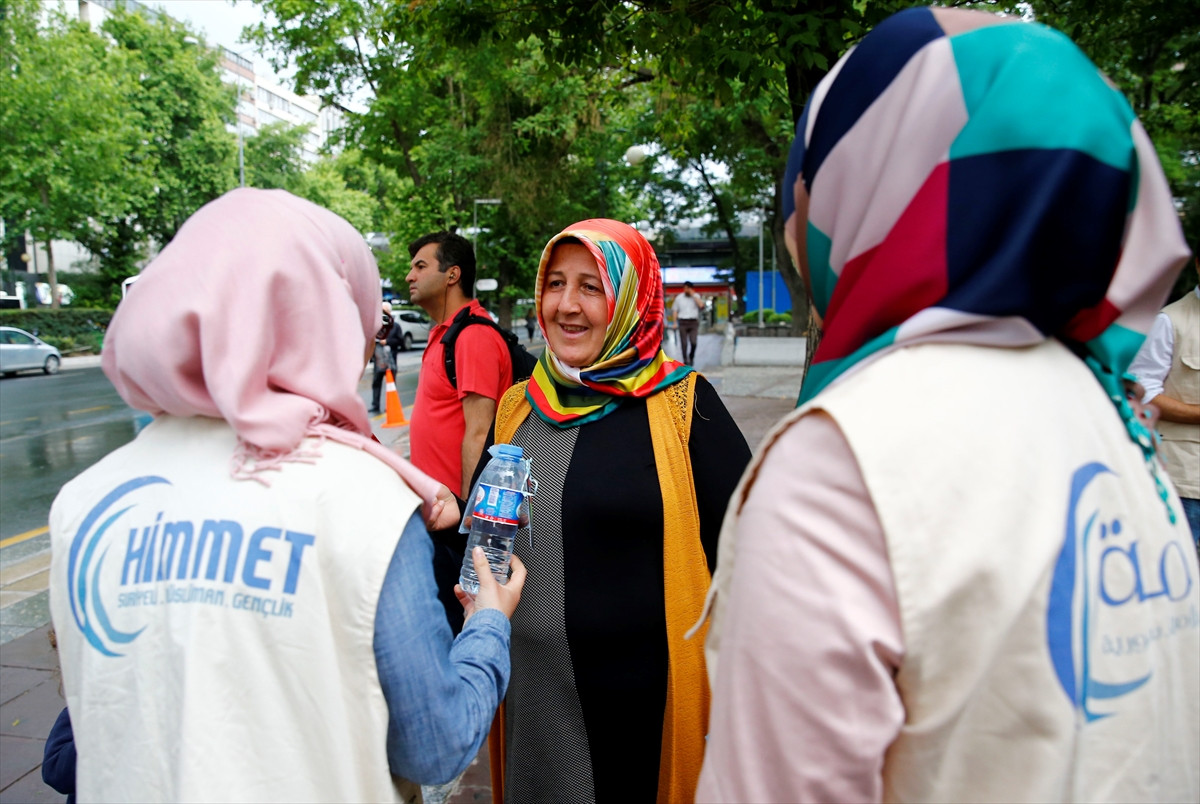 ANKARA (AA) - Suriyeli bir grup öğrenci, ramazanın ilk günü Kızılay'da vatandaşlara hurma ve su ikramında bulundu.