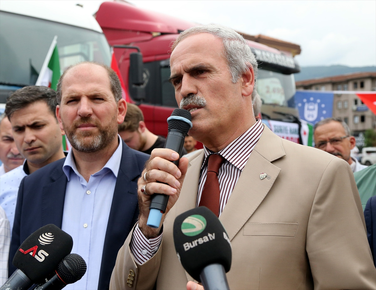 Bursa İHH İnsani Yardım Derneği Başkanı Hüseyin Kaplan da bu araçlardaki malzemelerin Kilis'teki merkezde toplandıktan sonra savaş mağdurlarına dağıtılacağını söyledi.