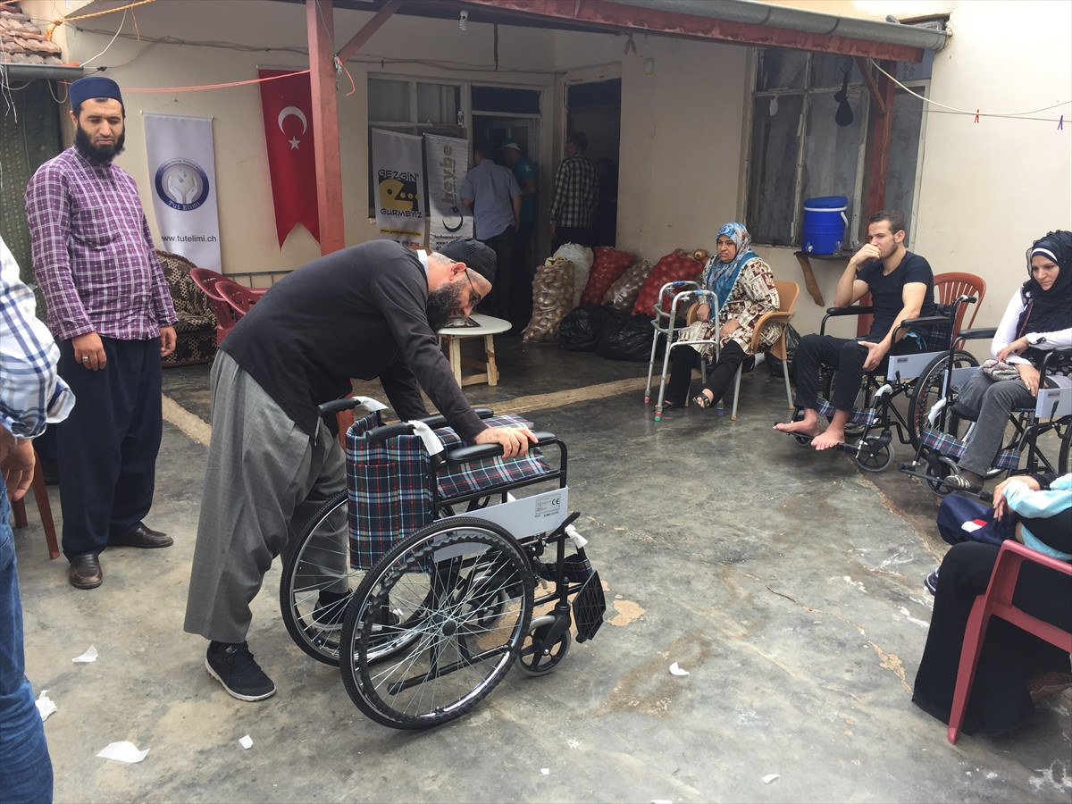 HATAY (AA) - Hatay'ın Reyhanlı ilçesindeki Suriye'deki iç savaşta uzuvlarını kaybeden 15 yürüme engelliye tekerlekli sandalye yardımında bulundu.