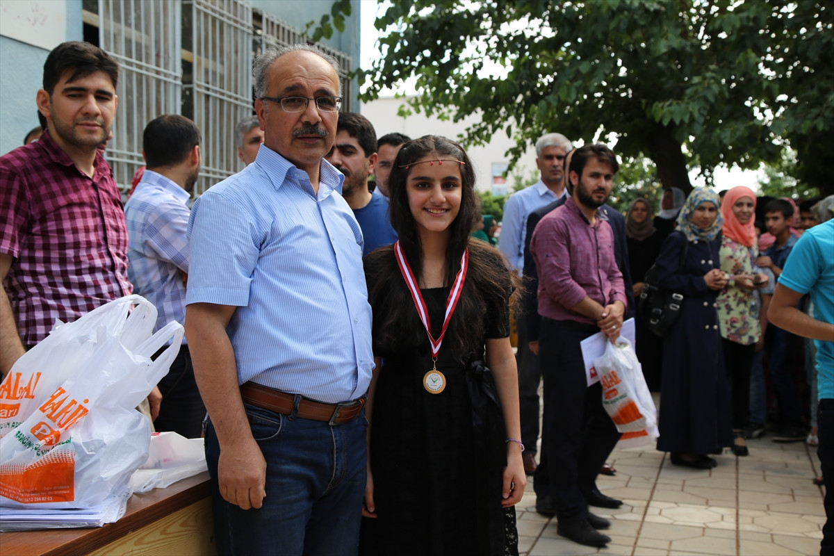 Mardin'in Artuklu ilçesinde Evliya Çelebi Geçici Eğitim Merkezinde eğitim gören yaklaşık 900 Suriye ve Iraklı öğrenciye törenle karneleri verildi.