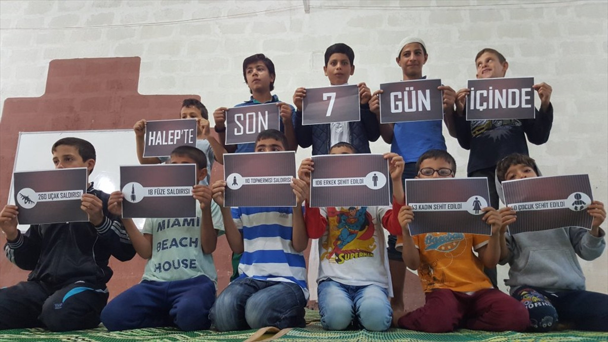 Ülkelerindeki iç savaştan kaçarak Hatay'ın Reyhanlı ilçesine yerleşen ve kendileri için açılan Bahattin Yıldız Yetimhanesinde kalan yetimler, Suriye rejimi ve Rus güçlerinin Halep kentine düzenlediği hava saldırılarını protesto etti. Bahattin Yıldız Yetimhanesi'nde barınan 70 Suriyeli yetim, Halep'te hayatını kaybedenler için dua ederek Kuran-ı Kerim okudu. Yetimhanenin sorumlusu Abdülhamid Altıntaş, AA muhabirine yaptığı açıklamada, Halep'te yaşanan zulme sessiz kalamadıklarını söyledi. Kardeşlerinin yanında olduklarını göstermek istediklerini dile getiren Altıntaş, "Suriyeli yetimlerimiz kardeşleri için dua edip Kuran-ı Kerim okudu. Onların acısını bizler burada yaşıyoruz. Dualarımız her zaman onlarla olacak. Suriye'deki iç savaşın bir an önce bitmesini temenni ediyoruz. Etkinlikte yetim çocuklar, 'Halep yanıyor' dövizi açarak Halep'teki olaylara tepki gösterdi. Zulmün bitmesini istiyoruz." diye konuştu.