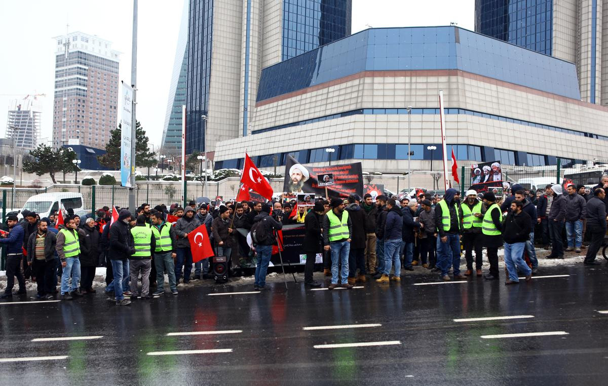 Polis ekiplerinin yoğun güvenlik önlemi aldığı eylemde, Kur'an-ı Kerim tilavetinin ardından Suudi Arabistan aleyhinde sloganlar atıldı.