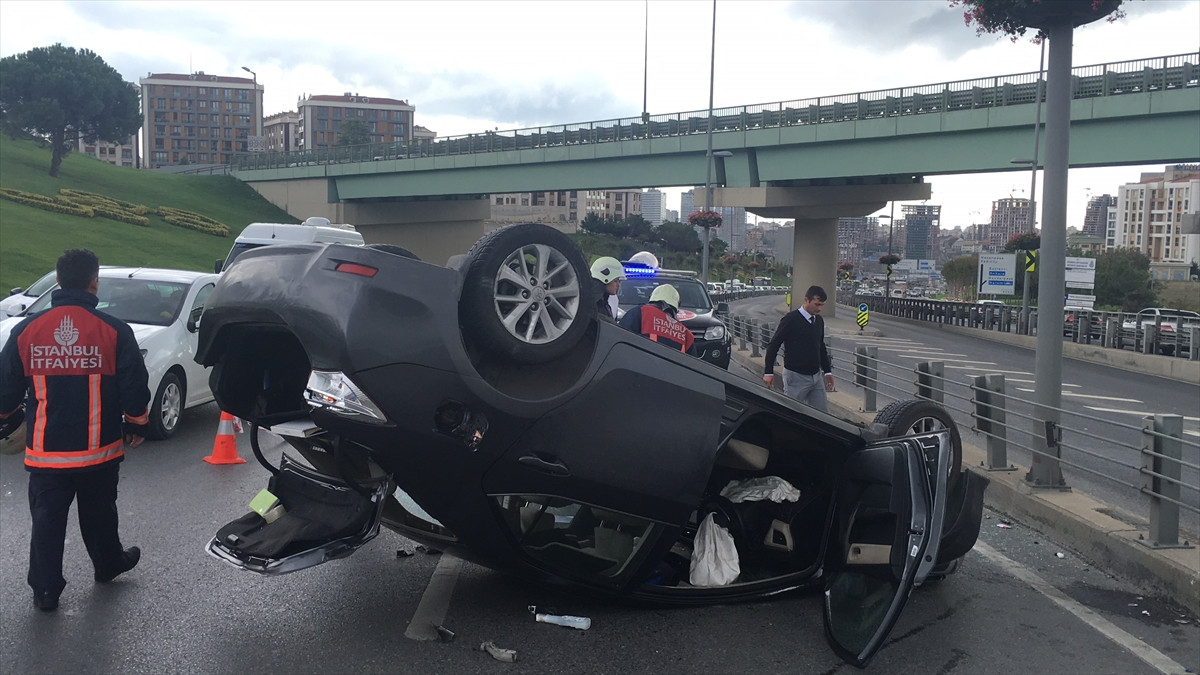 İSTANBUL (AA) - Acıbadem'de kamyona arkadan çarparak takla atan otomobilin sürücüsü yaralandı.