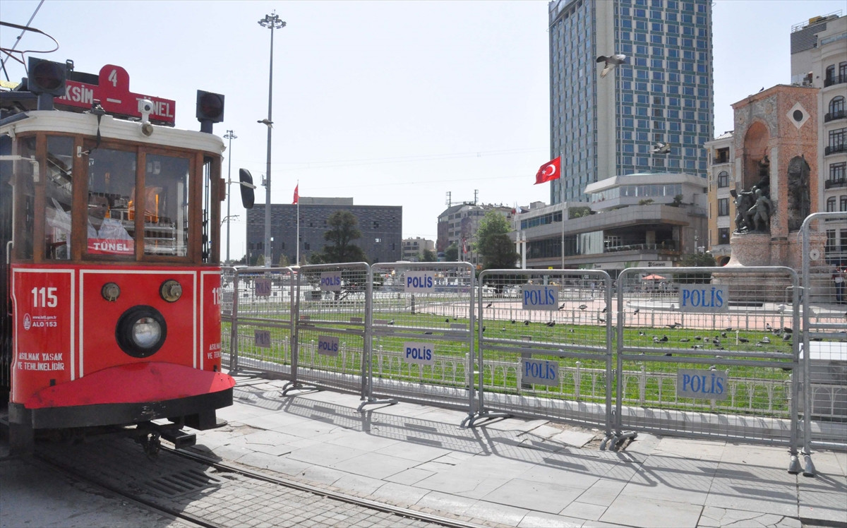Taksim Cumhuriyet Anıtı'nın etrafı demir bariyerlerle çevrilerek, vatandaşların anıt alanına girişi kapatıldı.