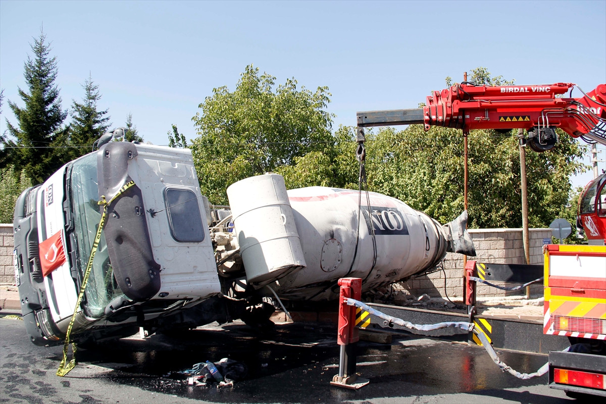 Sürücü Kocadağ, beton mikserini tamir etmek için altına girdiği sırada freni boşalan araç, yaklaşık 50 metre sonra istinat duvarına çarparak devrildi.
