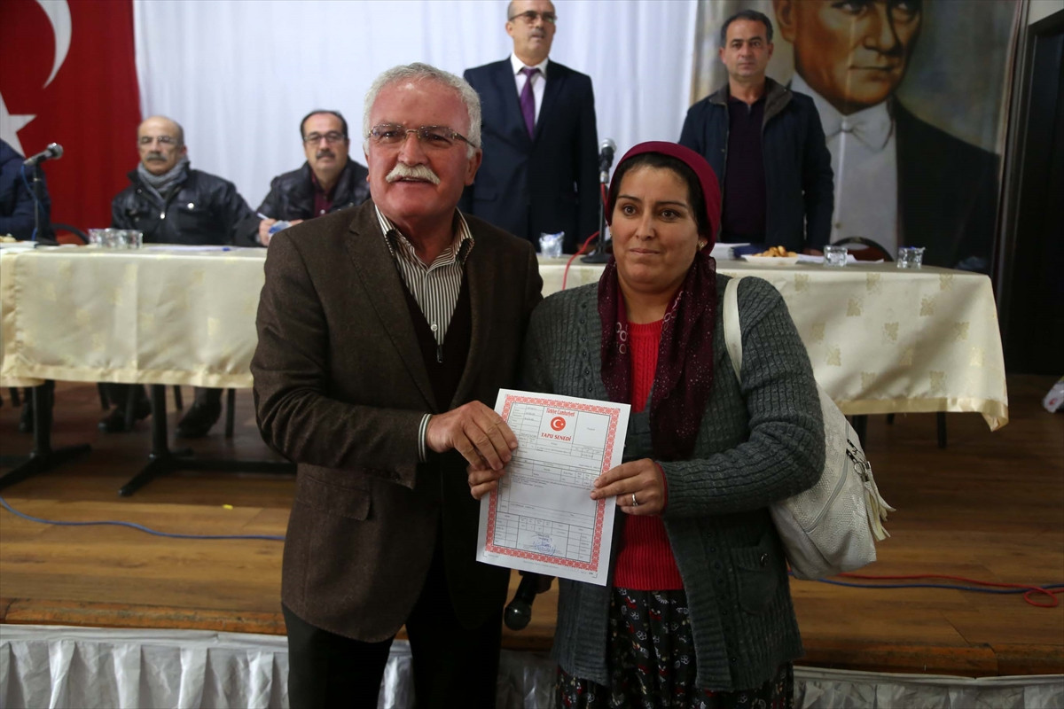 Binalarla ilgili sorunların çözülmesinin ardından ilçedeki bir düğün salonunda düzenlenen törenle tapular hak sahiplerine dağıtıldı.