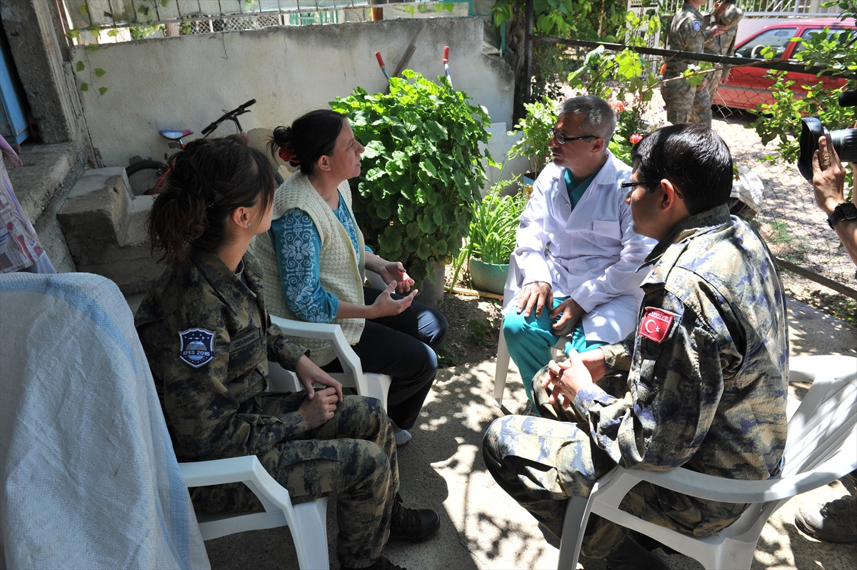 Sıhhiye Alay Komutanı Albay Bekir Cihan Özcan ile askeri personel, doktor ve hemşireler, ilçedeki Özbek ve Turasan mahallelerinde yaşayan vatandaşları evlerinde ziyaret etti.