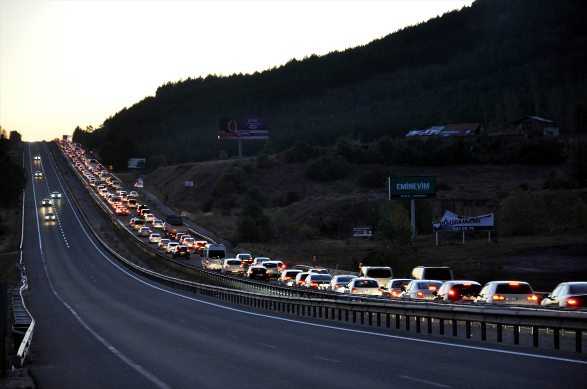 BOLU (AA) - Kurban Bayramı tatilini tamamlayarak eve dönüş yolculuğuna çıkanlar, Samsun-Bolu karayolunun Gerede mevkisi ile Kemikli ve Horhor rampalarında yoğunluğa neden oluyor.