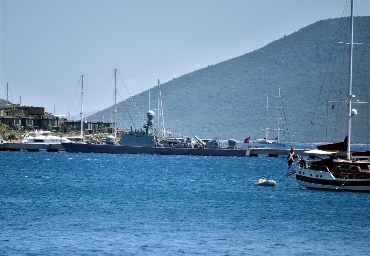 MUĞLA (AA) - Deniz Kuvvetleri Komutanlığına ait denizaltı ile TCG-Poyraz isimli hücumbot, "Beyaz Fırtına Tatbikatı" kapsamında, Bodrum ilçesine geldi.