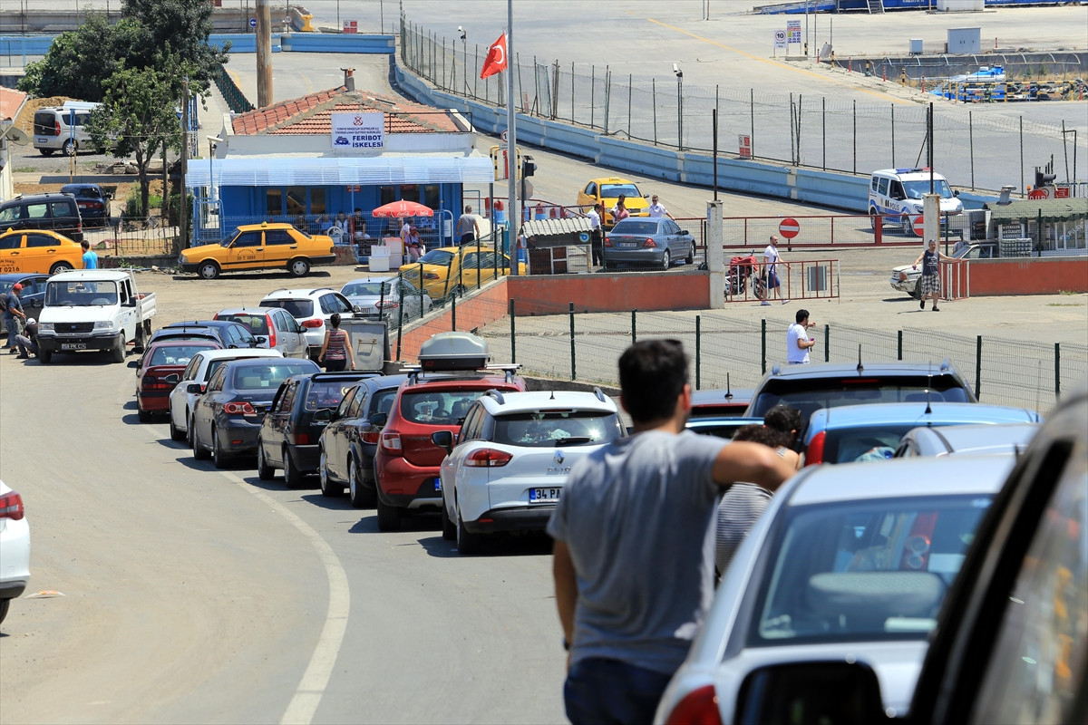 Trafik ve zabıta ekipleri herhangi bir olumsuzluğa karşı limanda tedbir alırken, tatilciler araçlarıyla yol kenarlarında sıranın kendilerine gelmesini bekliyor.