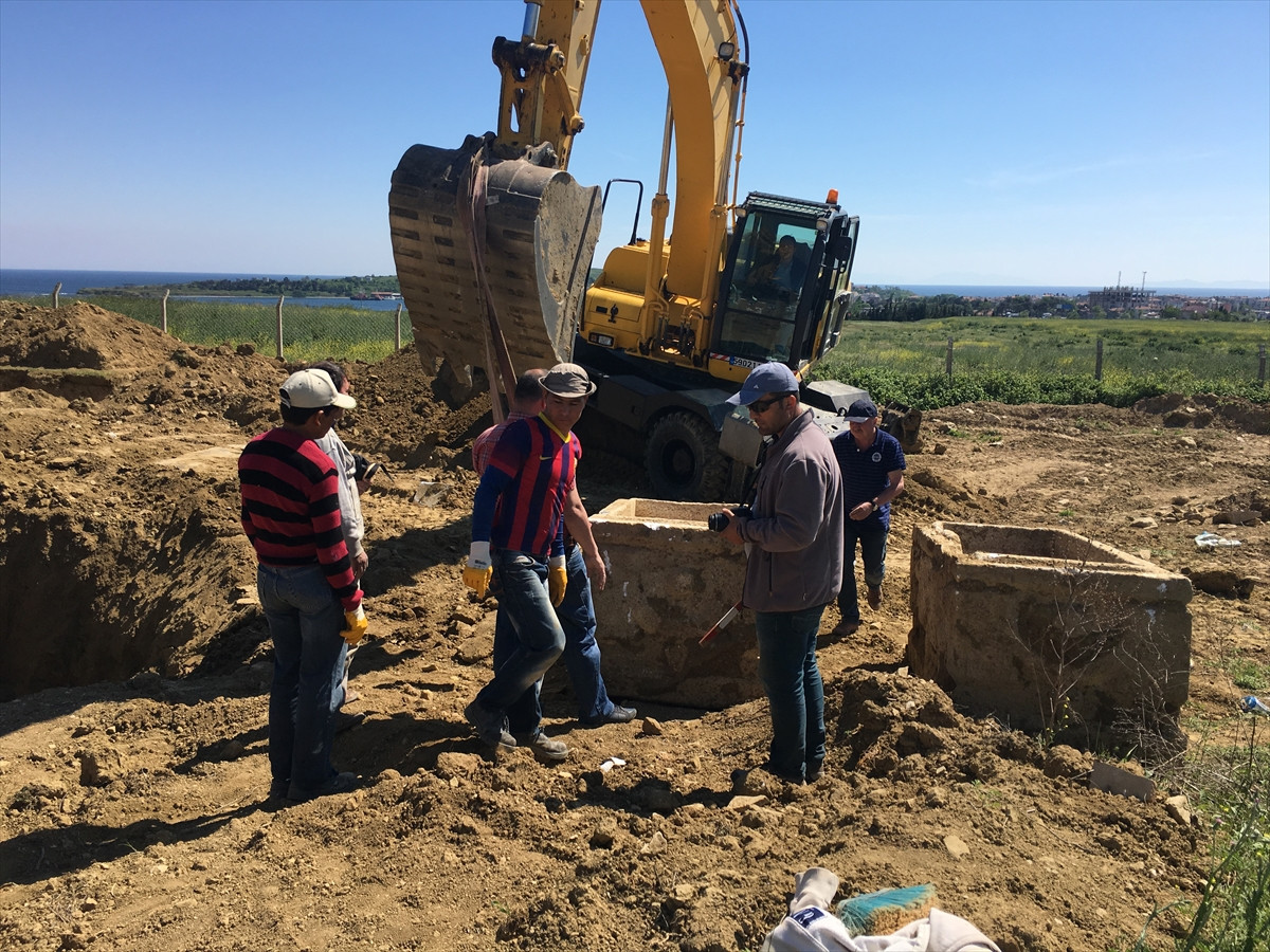 Roma dönemine ait ve bin yıllık olduğu tahmin edilen lahitlerin içinde bulunan kemikler, incelenmek üzere Tekirdağ Müze Müdürlüğüne götürüldü.