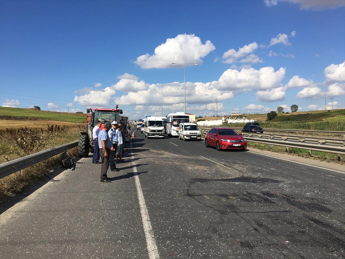 Alınan bilgiye göre, Çorlu-Çerkezköy karayolunun üniversite yolu mevkisinde Özkan Biçer yönetimindeki 59 YR 486 plakalı otomobil, lastiği patlayan 34 TY 9850 plakalı traktörün tamiri için gelen ve park halinde bulunan 59 PM 624 plakalı panelvana arkadan çarptı.
