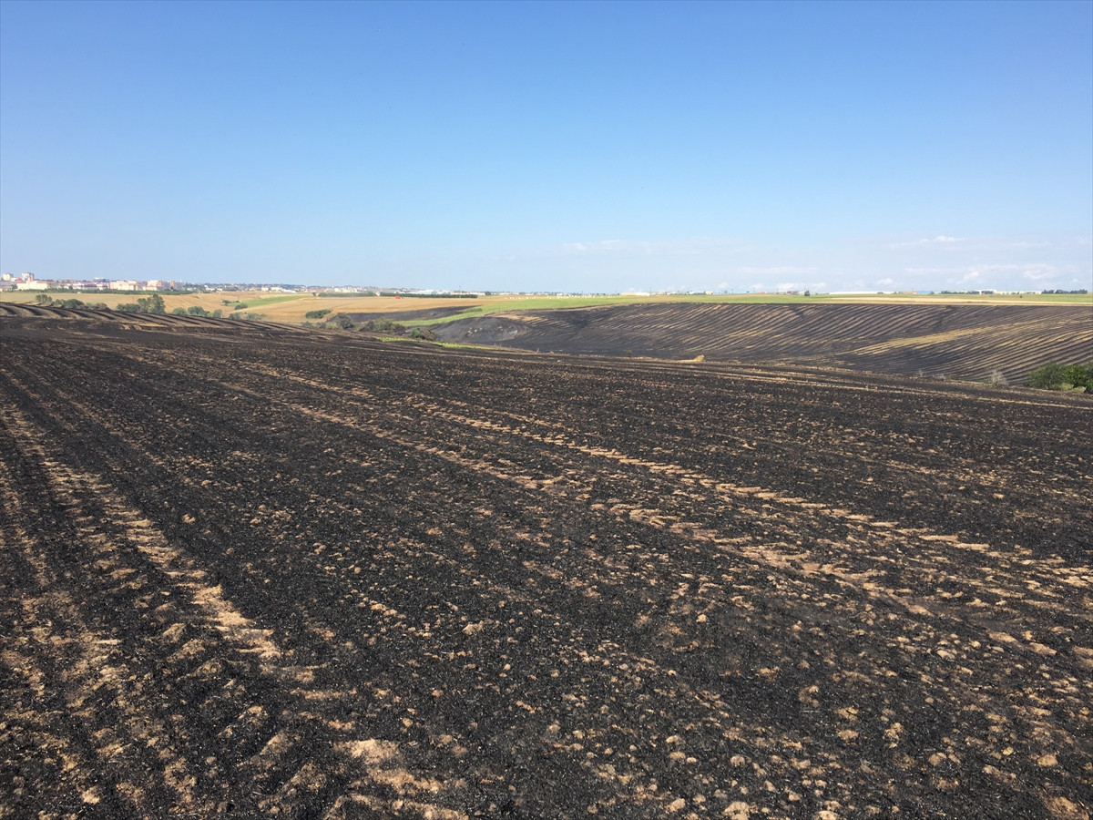 Yangında, 10 dönüm ekili alan ile saman balyaları yandı. Saman yüklü kamyon da yanarak kullanılamaz hale geldi.