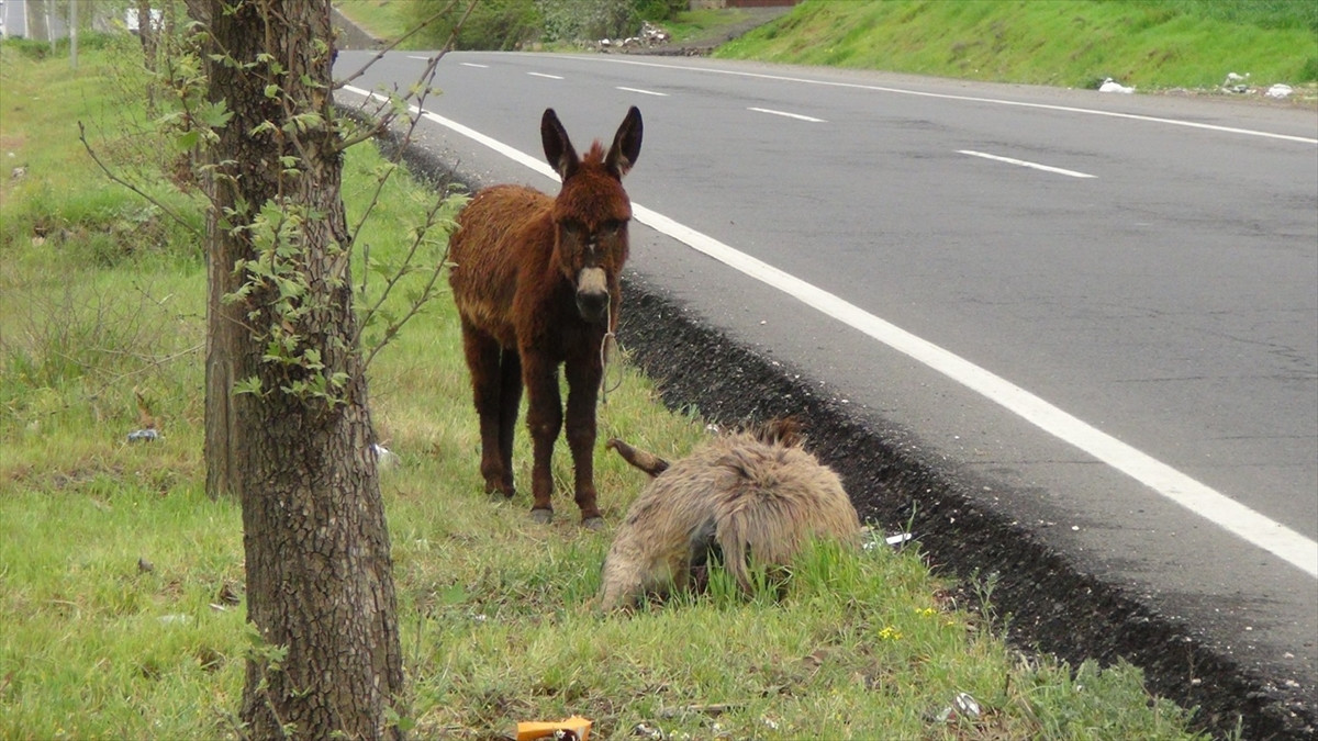 Diyarbakır-Mardin karayolunun 20. kilometresinde araç altında kalarak telef olan eşeğin yavrusu, annesinin başından 5 gündür ayrılmıyor. Sıpanın, anne sevgisi olaya şahit olan vatandaşları duygulandırdı.