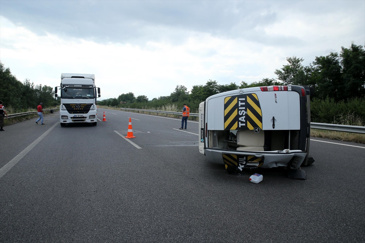 DÜZCE (AA) - Düzce'de, TEM Otoyolu'nda devrilen minibüsteki 3 kişi yaralandı.