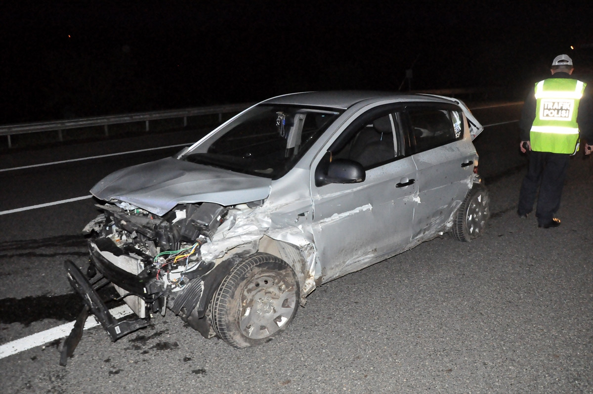Alınan bilgiye göre, TEM Otoyolu'ndan Ankara yönüne giden Mehmet Şahin idaresindeki 34 ZT 2483 plakalı otomobil, Gümüşova rampaları mevkisinde, sürücüsünün direksiyon hakimiyetini kaybetmesi sonucu bariyerlere çarptı.