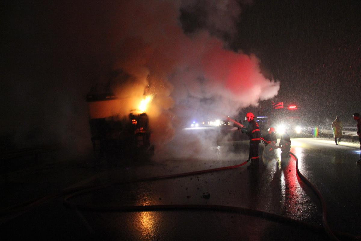 Motor kısmından alevler yükseldiğini gören tır sürücüsü, aracını emniyet şeridine çekerek itfaiye ekiplerine durumu bildirdi. Yangın nedeniyle ulaşım Ankara istikametine durdu.