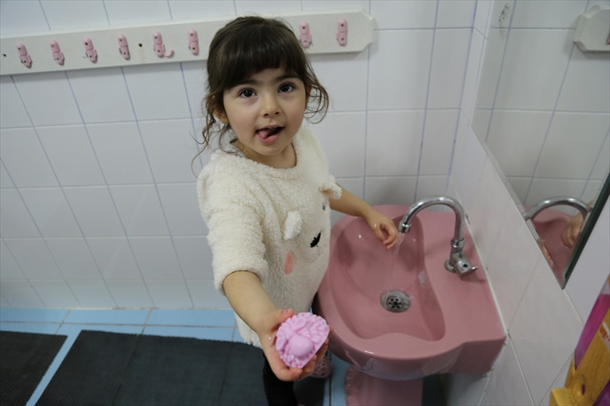 KARAMAN (AA) - Karaman'da faaliyet gösteren bir anaokulunda yürütülen "Temiz eller, gülen yüzler" projesi ile 3-5 yaşındaki çocuklara el yıkama alışkanlığı edindiriliyor.