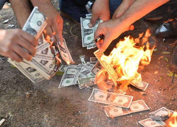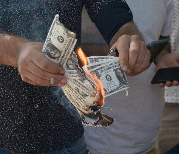 Adana'da vatandaşlar, döviz kurlarındaki artışı protesto etmek için temsili dolar yaktı.