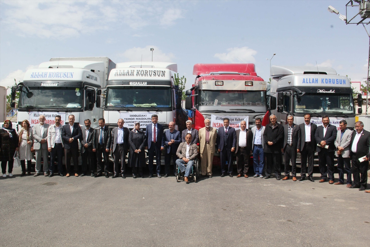Konuşmaların ardından içinde çocuk arabası, battaniye, oyuncak, çocuk bezi ve gıda malzemeleri bulunan 4 tırdan 3'ü Suriye'nin Azez kentine diğeri ise Diyarbakır ve Şırnak'a uğurlandı.