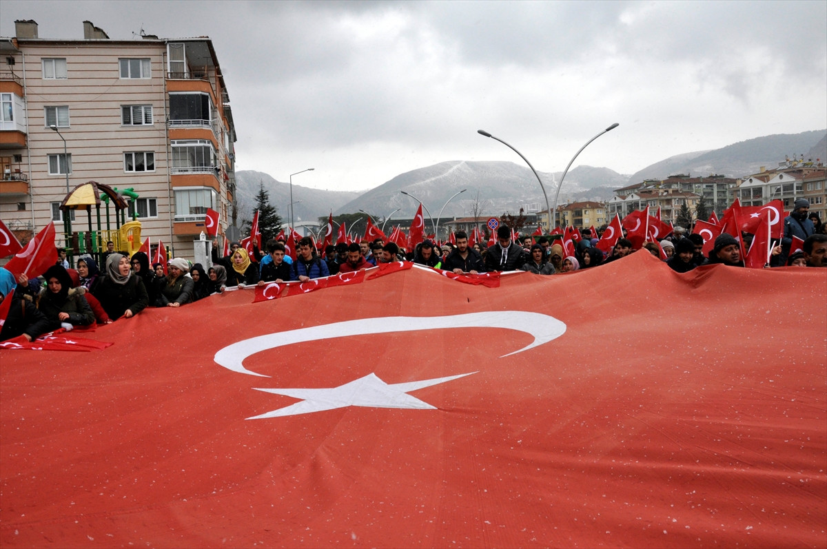 Ellerinde taşıdıkları Türk bayrakları ve dövizlerle Yavuz Selim Meydanı'na kadar yürüyen vatandaşlar, "Askere uzanan eller kırılsın", "Şehitler ölmez vatan bölmez" sloganları attı.