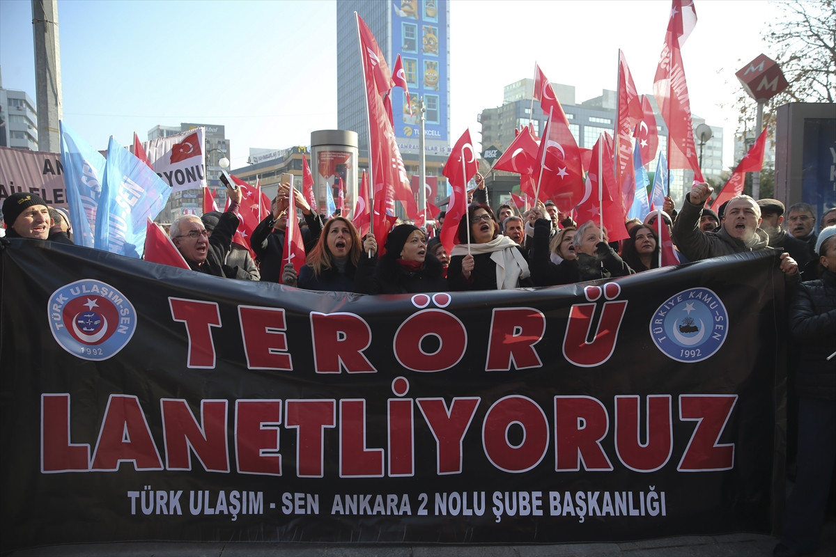 ANKARA (AA) - Türkiye Kamu-Sen, İstanbul ve Beşiktaş'taki terör saldırılarını Kızılay'da protesto etti.