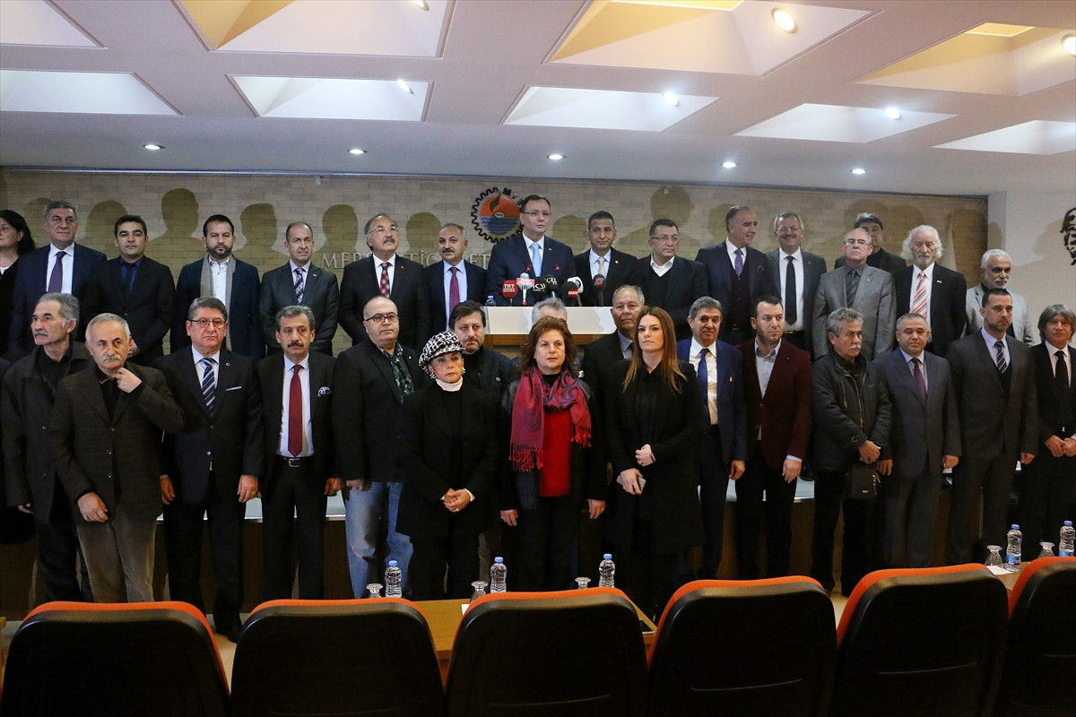 Mersin Ticaret ve Sanayi Odasında (MTSO) düzenlenen basın açıklaması öncesi, şehitler için saygı duruşunda bulunuldu, İstiklal Marşı okundu.