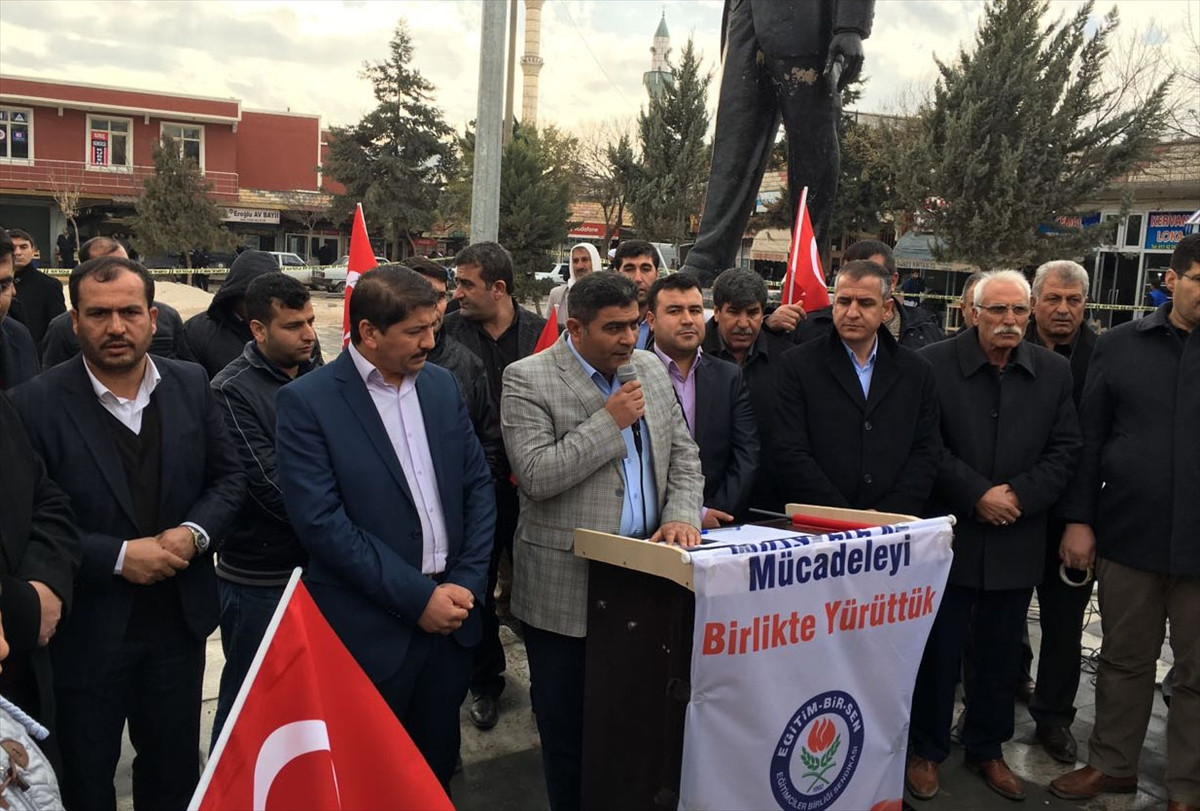 Eğitim-Bir-Sen İlçe Temsilciliğince organize edilen etkinlikte cuma namazı sonrası Cumhuriyet Meydanı'nda toplanan aralarında İstanbul'daki terör saldırısında şehit olan polis memuru Enes Çiçek'in babası Bekir Çiçek ve yakınlarının da bulunduğu vatandaşlar, ellerindeki Türk bayraklarıyla, "Şehitler ölmez, vatan bölünmez", "Kahrolsun PKK" sloganları attı.