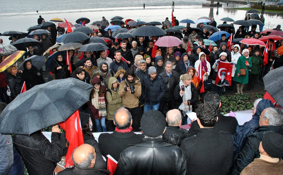 Cumhuriyet Meydanı'nda soğuk ve yağışlı havaya rağmen toplanan grup, ellerindeki Türk bayrakları ile terör saldırılarını protesto etti.