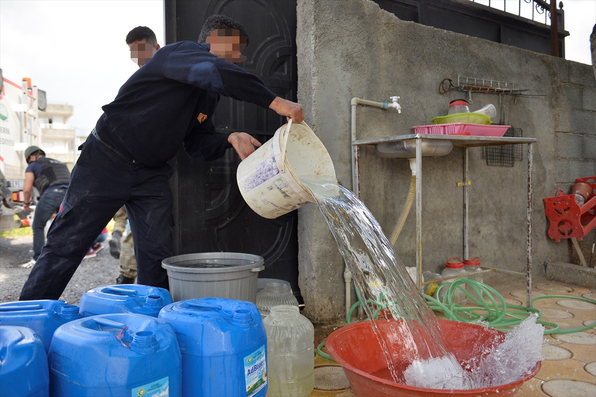 MARDİN (AA) - Mardin'in Nusaybin ilçesinde terör örgütü PKK'ya yönelik operasyonu sürdüren güvenlik güçleri, teröristlerin bombalı saldırısı sonucu su şebekesi tahrip olan mahallelerdeki vatandaşlara yardım elini uzattı.