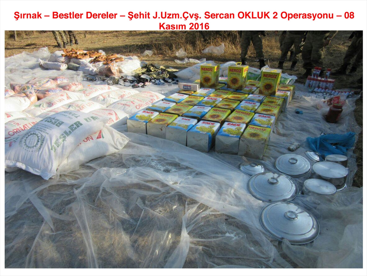 Ayrıca, 9 bin 656 kilogram un, 8 bin 724 kilogram bakliyat, 2 bin 590 kilogram şeker, bin 754 kilogram sıvı yağ, bin 392 kilogram salça, bin 52 kilogram patates ve kuru soğan, bir ton peynir, zeytin, reçel ve helva, 981 kilogram çay ile 4 bin 900 muhtelif giyim eşyası, bin 611 mutfak eşyası, bin 311 çift ayakkabı, 6 bin 702 tıbbi malzeme, 447 tüp, 348 bilgisayar ve "iPad", 100 dürbün, 3 bin 700 pil, 10 jeneratör, 274 akü, 59 telsiz, 46 kamera ve 22 fotoğraf makinesi bulundu.